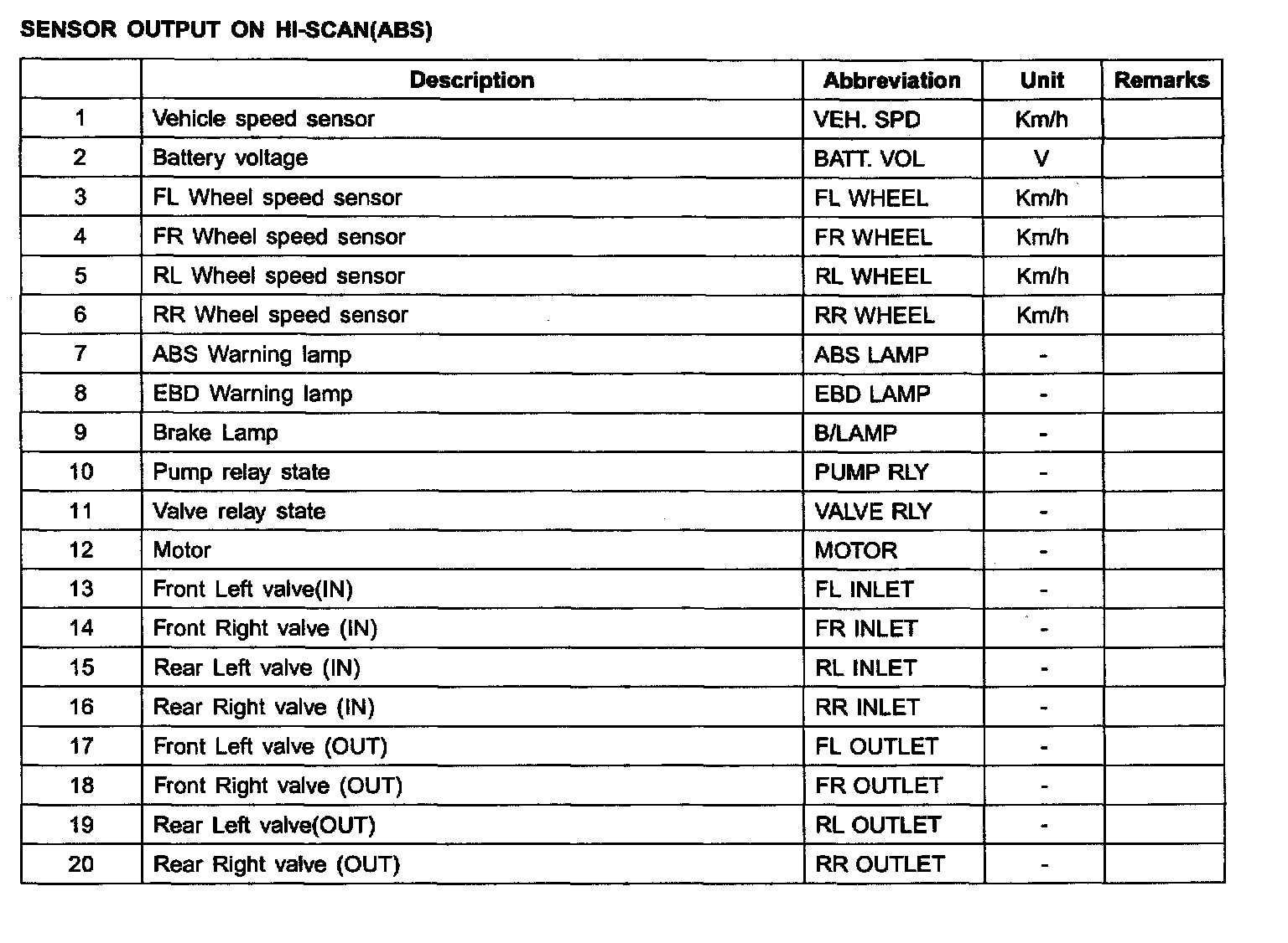 SENSOR OUTPUT ON HI-SCAN (ABS):