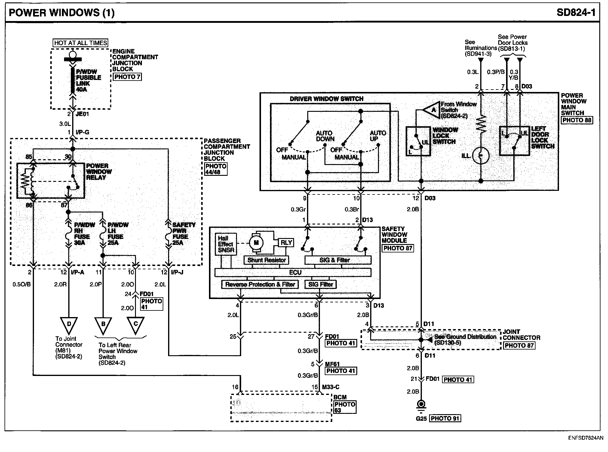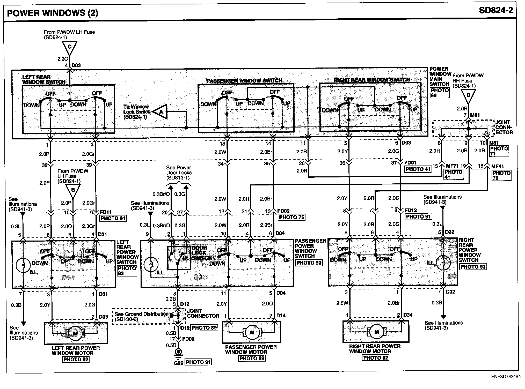 Power Windows Connector Pin Outs: