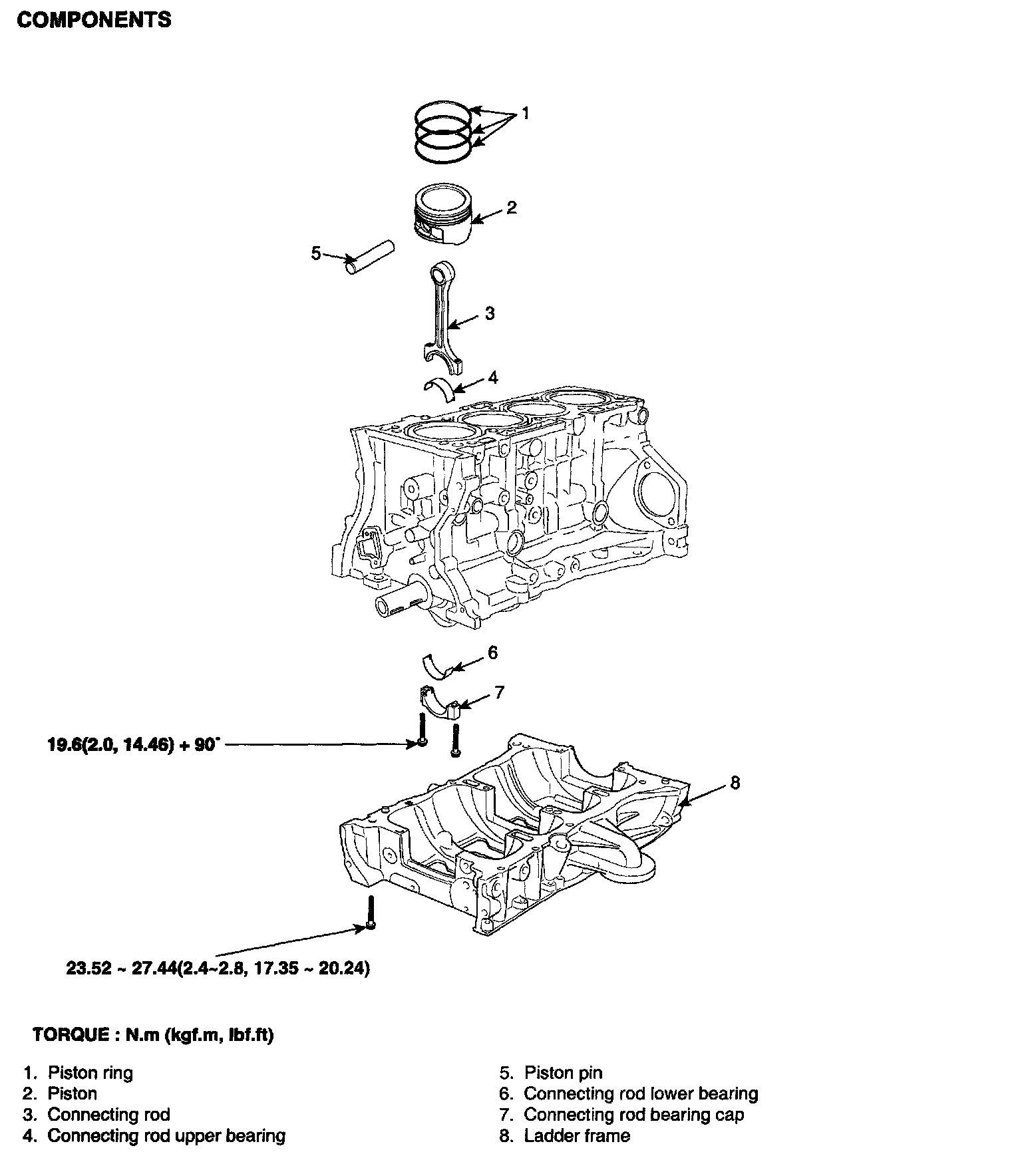 2) Push the piston, connecting rod assembly and upper bearing through the top of the cylinder block.
