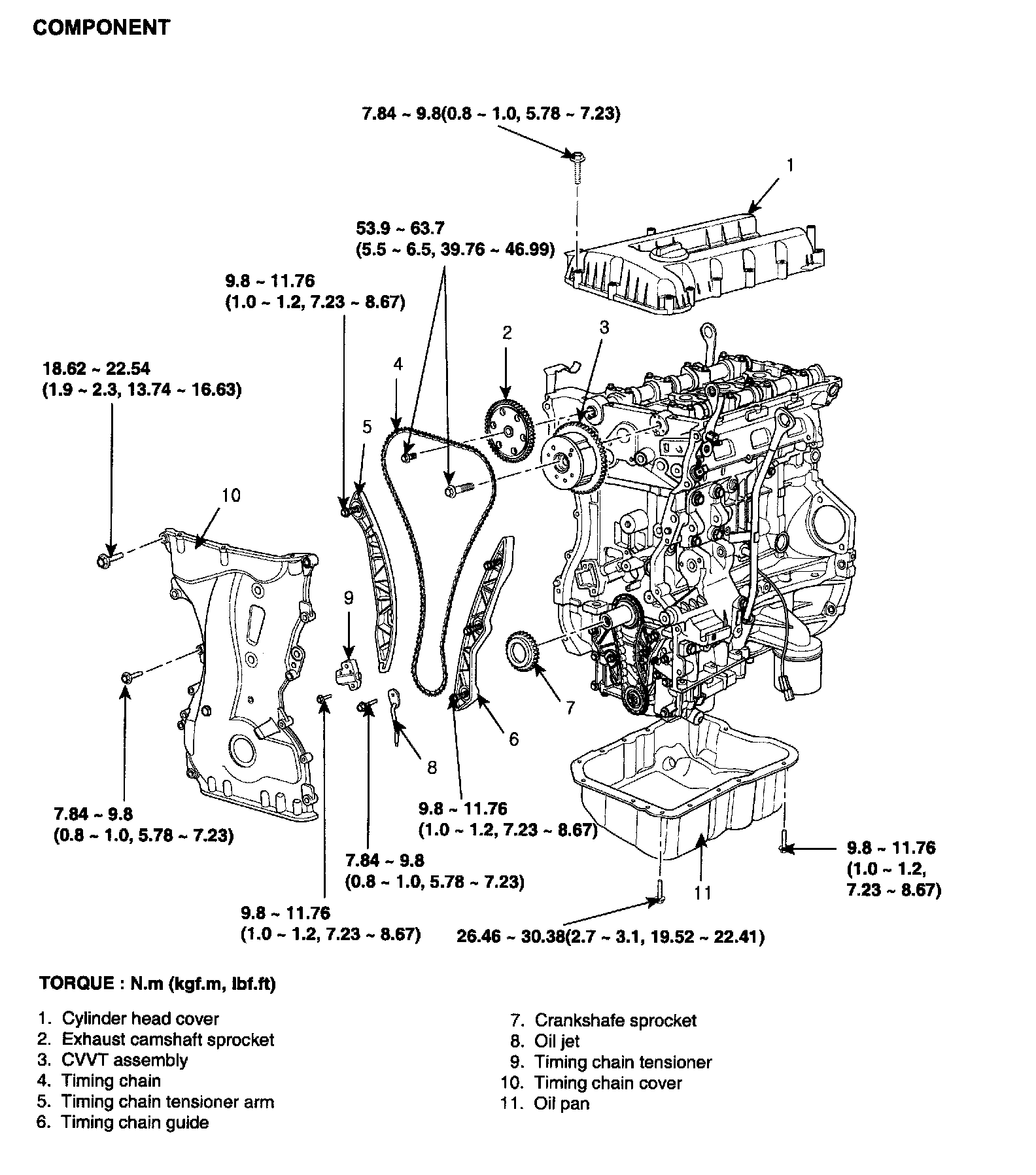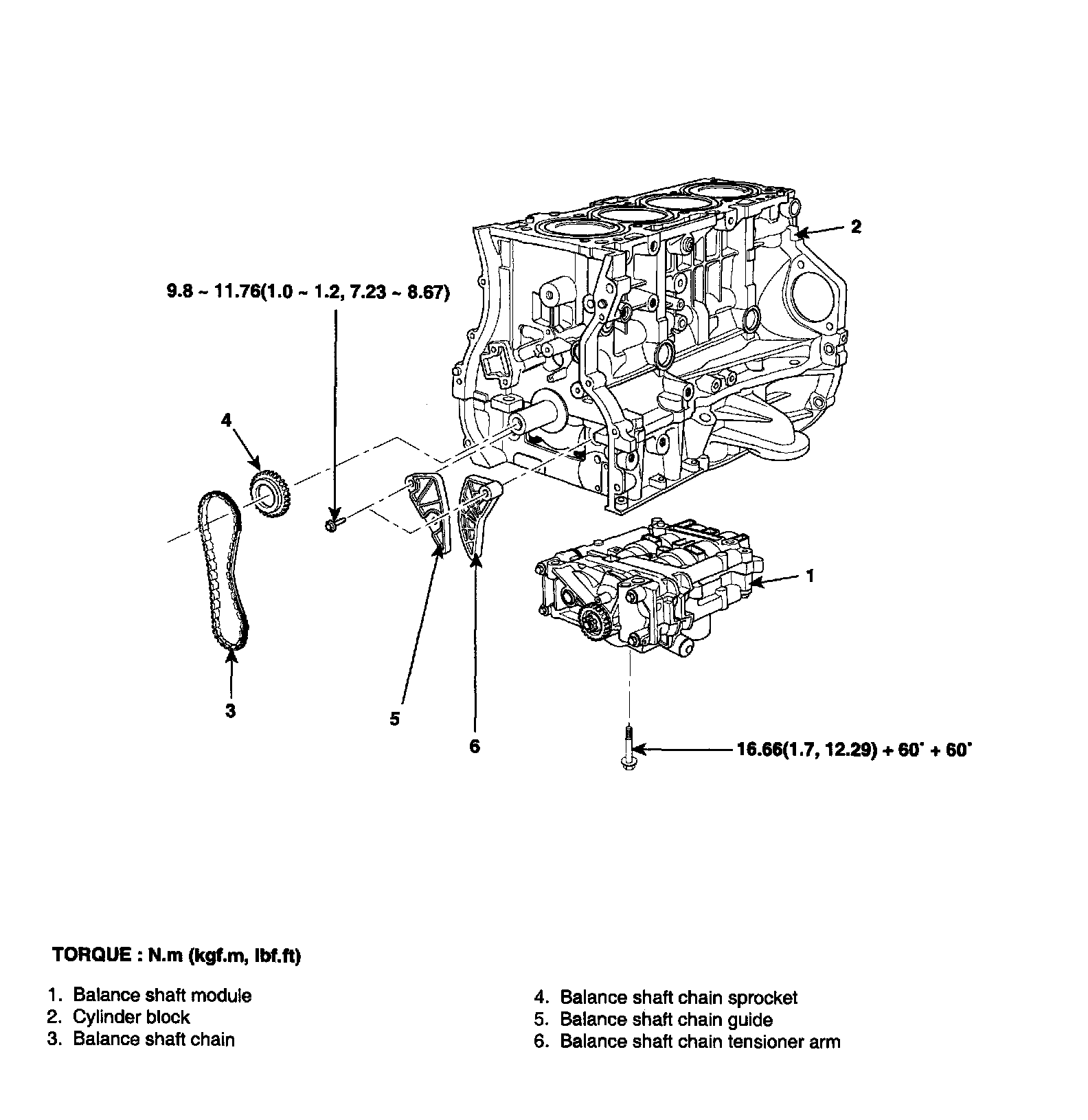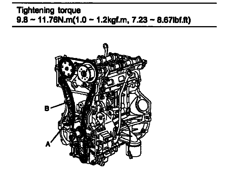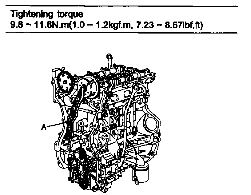 Tightening torque 9.8 - 11.76 Nm (0.0 - 1.2 kgf.m, 7.23 - 8.67 ft. lbs.)