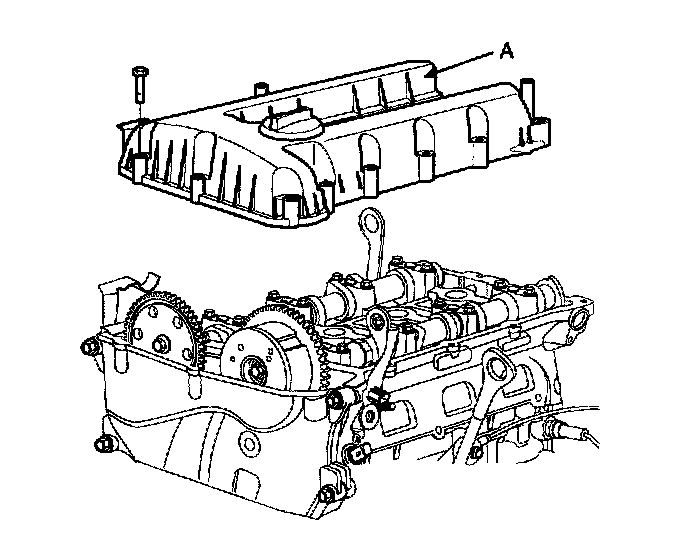 16. Loosen the cylinder head cover bolts and then remove the cylinder head cover (A) and gasket.
