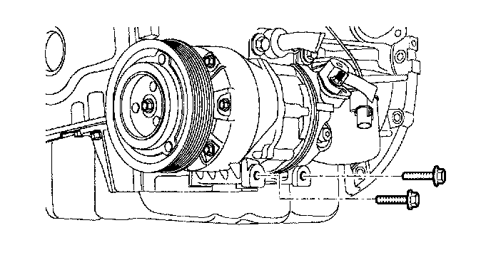 17. Remove the compressor lower bolts.
