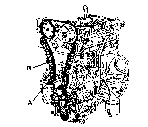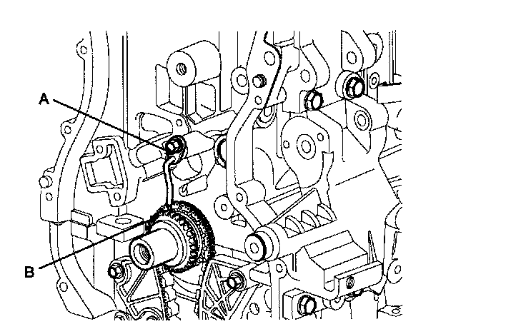 6. Remove the balance shaft module (A) and balance shaft chain (B).