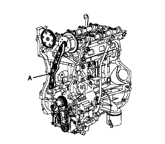 24. Remove the timing chain tensioner (A).
