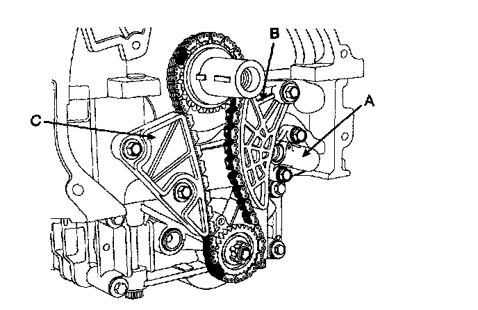 5. Remove the balance shaft chain guide (C).