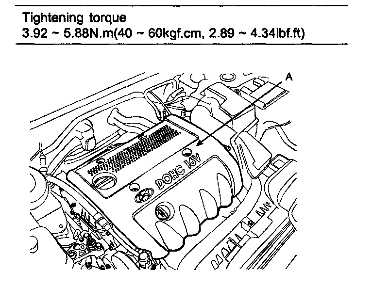 Tightening torque 3.92 - 5.88 Nm (40 - 60 kgf.cm, 2.89 - 4.34 ft. lbs.)