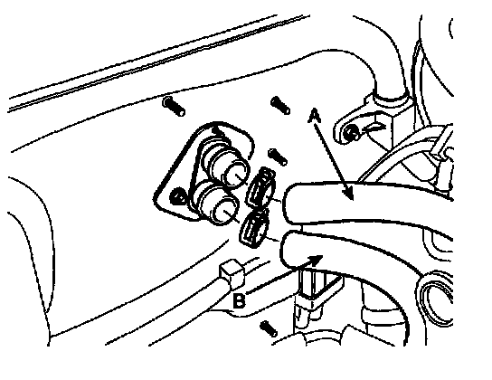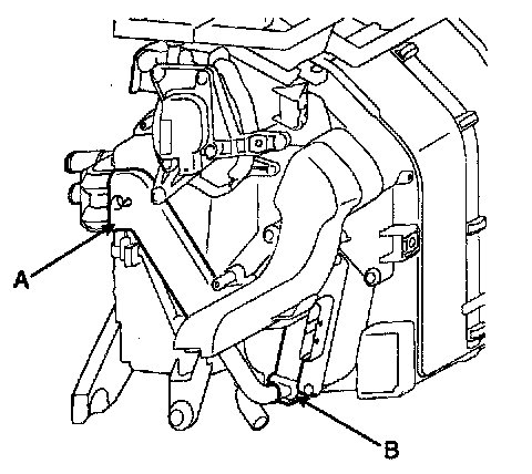 6. Disconnect the inlet (A) and outlet (B) heater hoses from the heater unit.