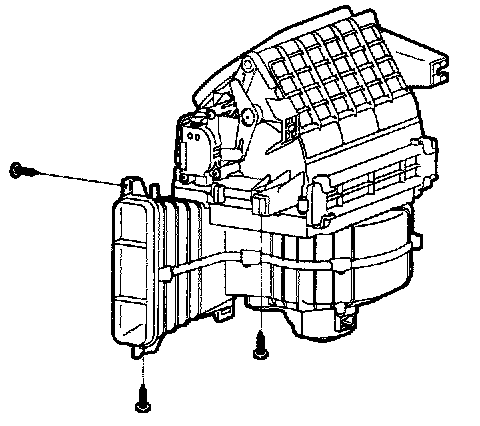 9. Disconnect the connectors from the temperature control actuator, the mode control actuator and the evaporator temperature sensor, then remove the mounting nut and the mounting bolts.