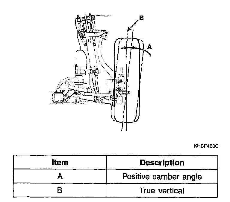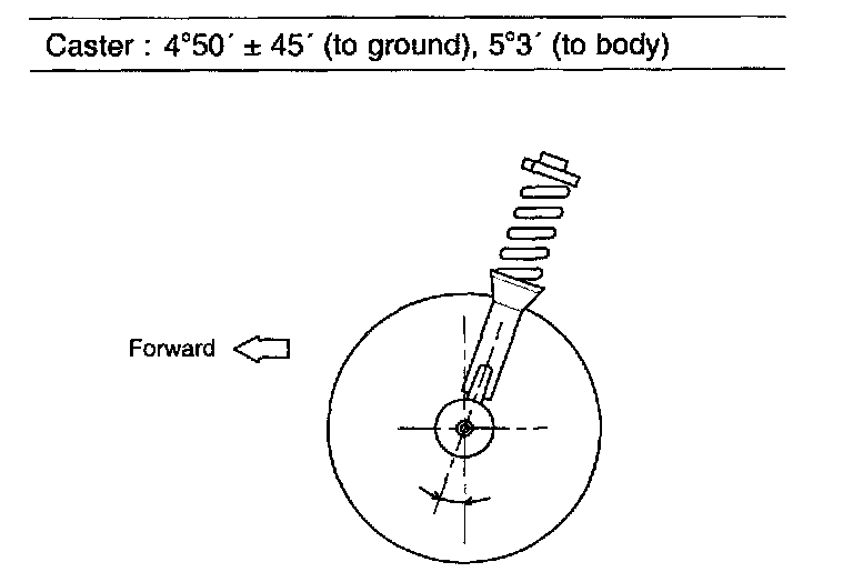 ^ Camber and caster are pre-set to the specified value at the factory and don't need to be adjusted. If the camber and caster are not within specifications replace bent or damaged parts.