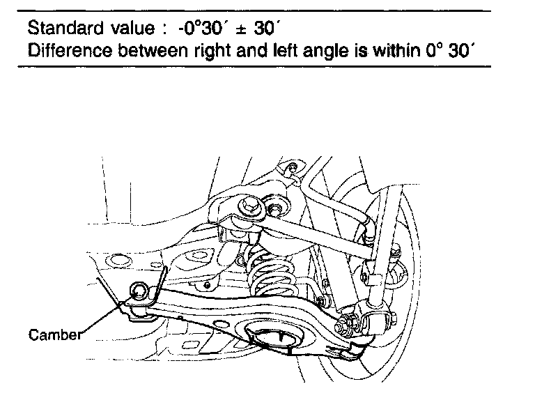 NOTE: Camber is pre-set at the factory and doesn't need to be adjusted. If the camber is not within the standard value, replace the bent or damaged parts.