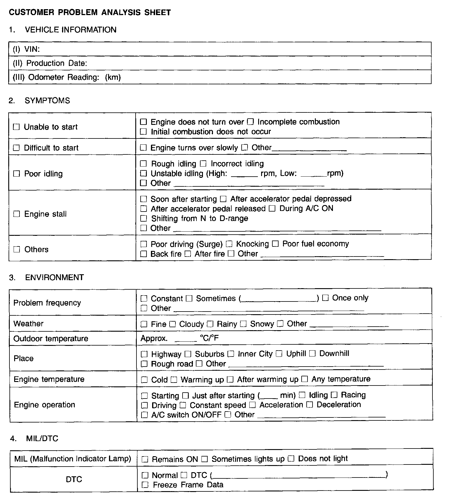 Customer Problem Analysis Sheet