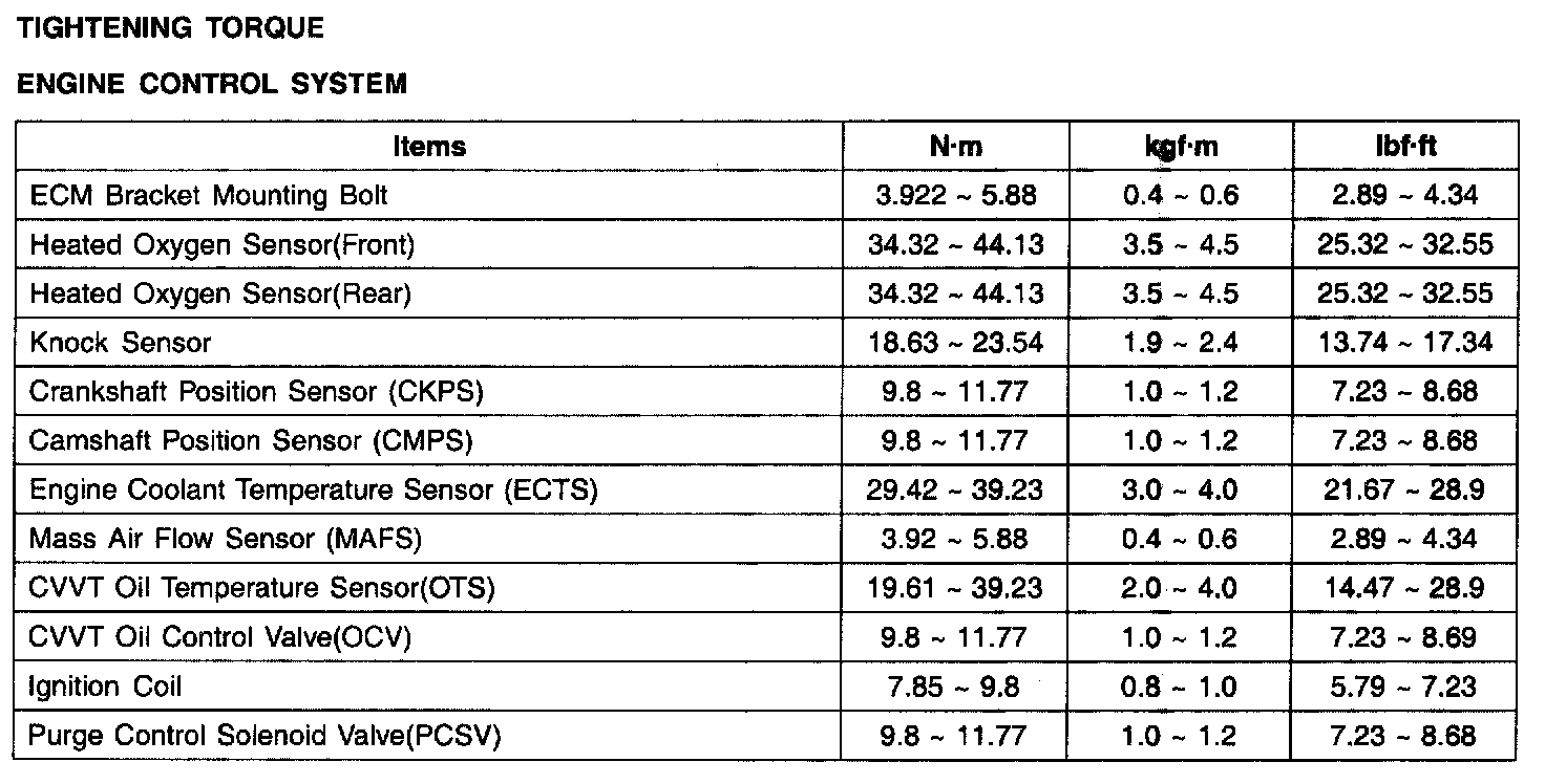 Tightening Torques - Engine Control System: