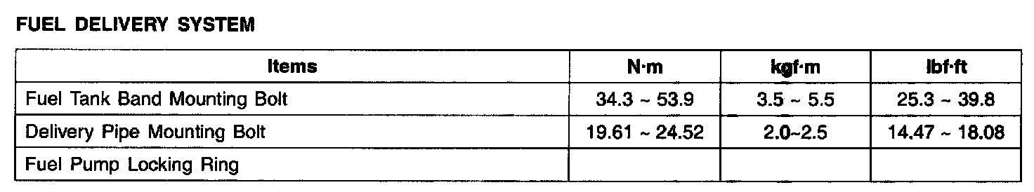Tightening Torques - Fuel Delivery System: