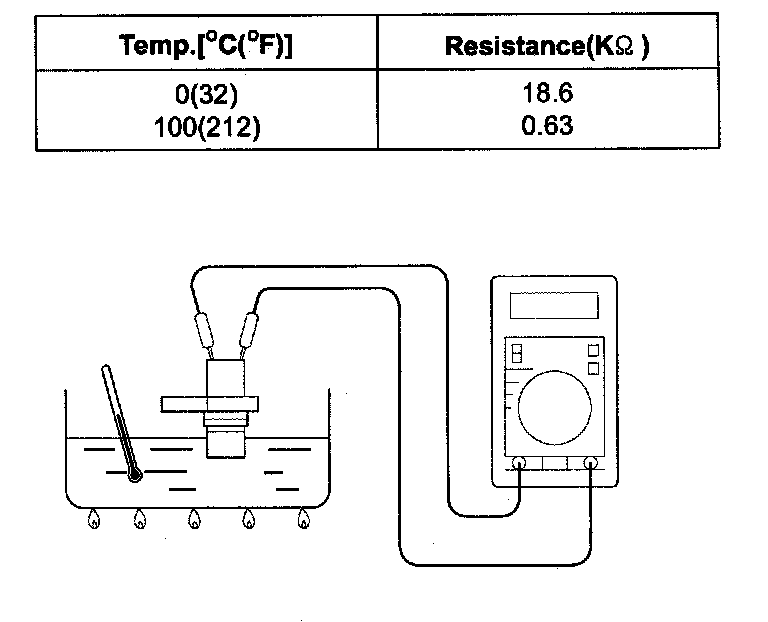 2. Measure the resistance between the terminal 1 and 2 of the sensor connector.