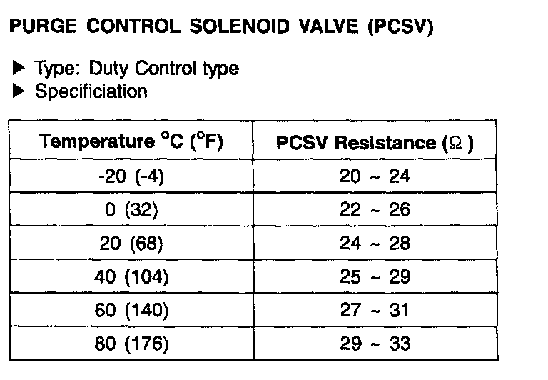 Purge Control Solenoid Valve (PCSV) - Specification: