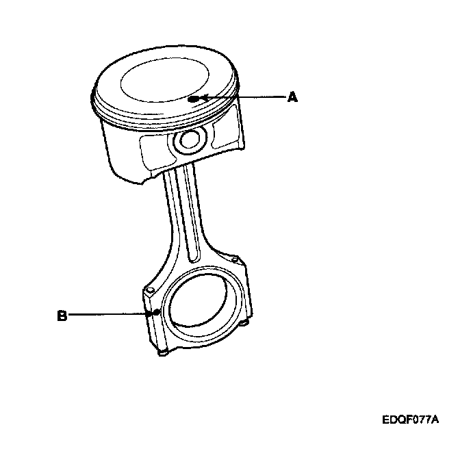 2) The piston front mark(A) and the connecting rod front mark(B) must face the timing belt side of the engine.