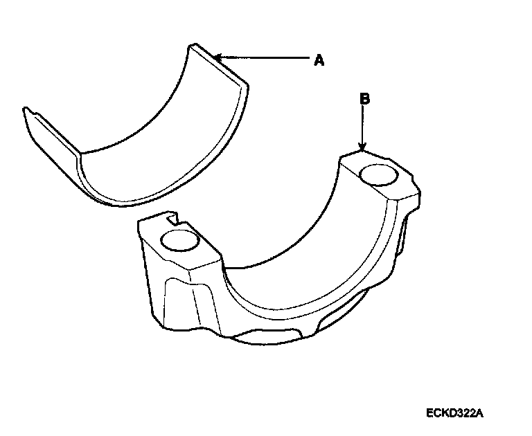 2) Align the bearing claw with the claw groove of the main bearing cap(A), and push in the 4lower bearings(B).