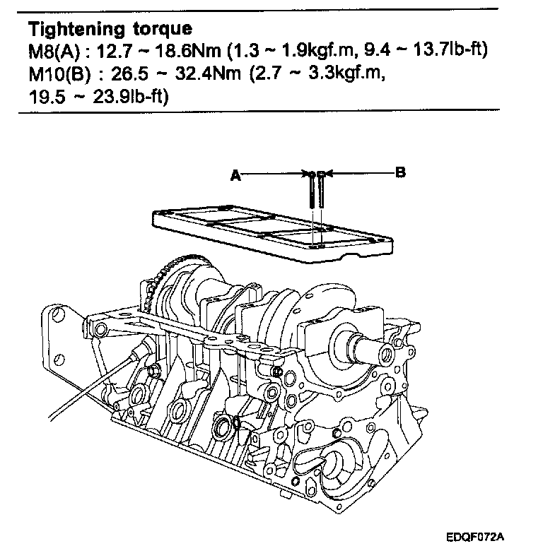 Main bearing cap bolt M8 12.7 - 18.6Nm (l.3 - 1.9kgf.m, 9.4 - 13.7lb-ft) + 90° - 95°