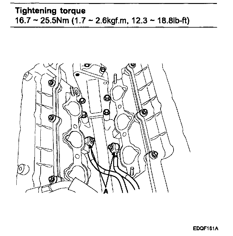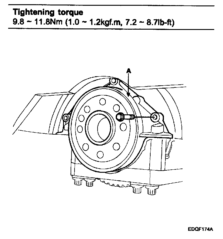 Tightening torque 9.8 -11.8Nm (l.0 - 1.2kgf.m, 7.2 - 8.7lb-ft)