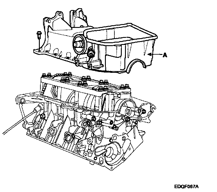 2) Install the oil pan(A) with the 17 bolts. Uniformly tighten the bolts in several passes.