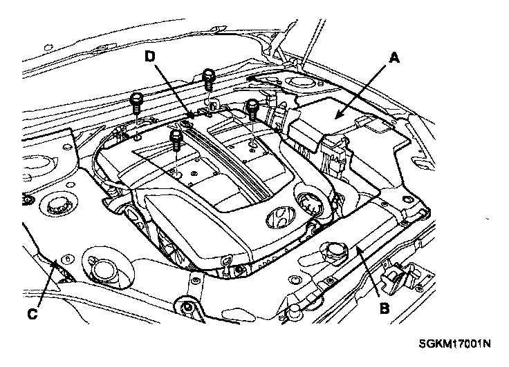 1. Remove the side cover(D) and the engine cover(A, B, C).