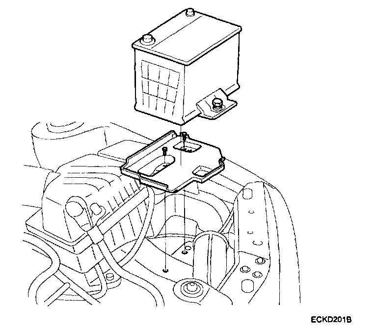 ^ Clean the battery posts and cable terminals with sandpaper, assemble them and then apply grease to prevent corrosion.