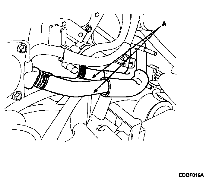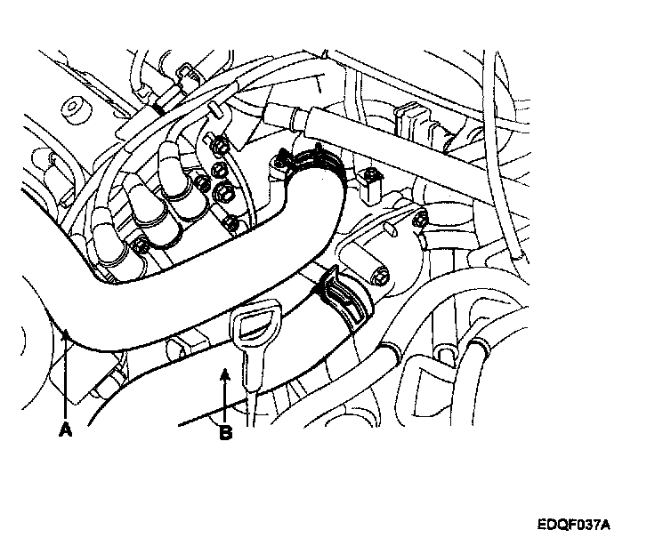 10. Remove the upper radiator hose(A) and lower radiator hose(B).