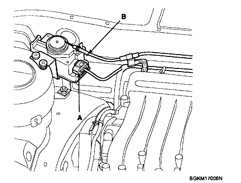 18. Remove the auto-cruise connector (A) and the auto-cruise cable (B).