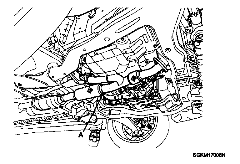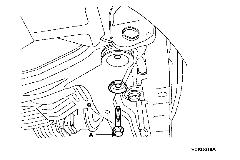 31. Remove the sub frame mounting bolts (A, B) and nut.