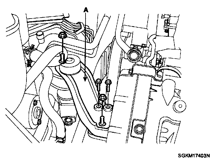 29. Remove the engine mounting support bracket(A) and the ground line(B).