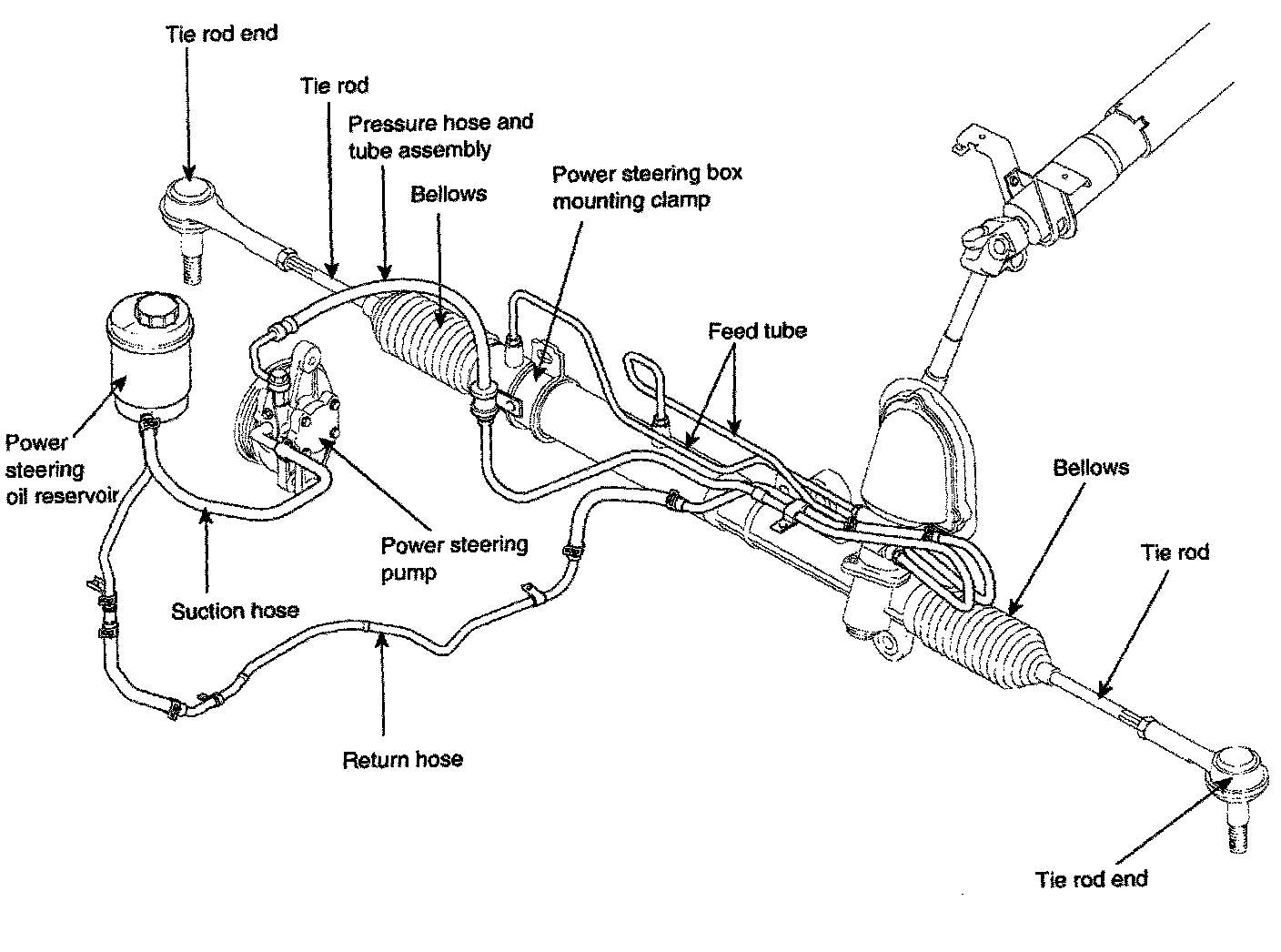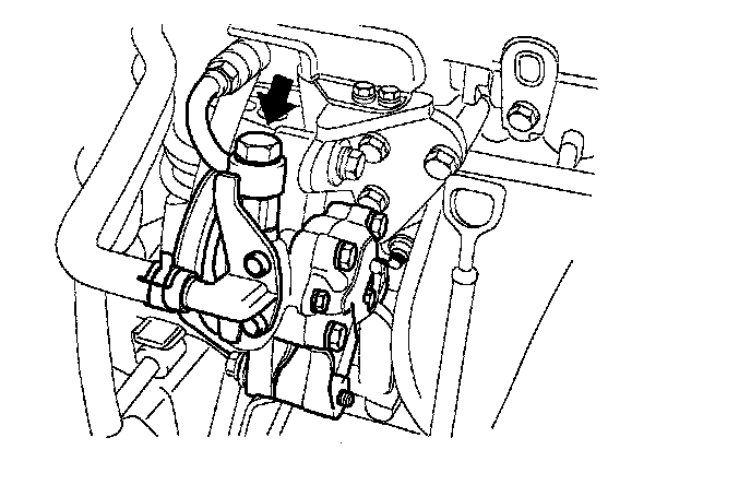 1. After draining the power steering fluid, remove the pressure hose mounting clamp.