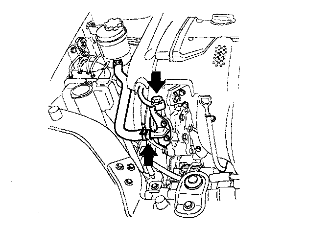 3. Raise the vehicle and remove the mounting clamp which is holding both the pressure tube and the return tube.