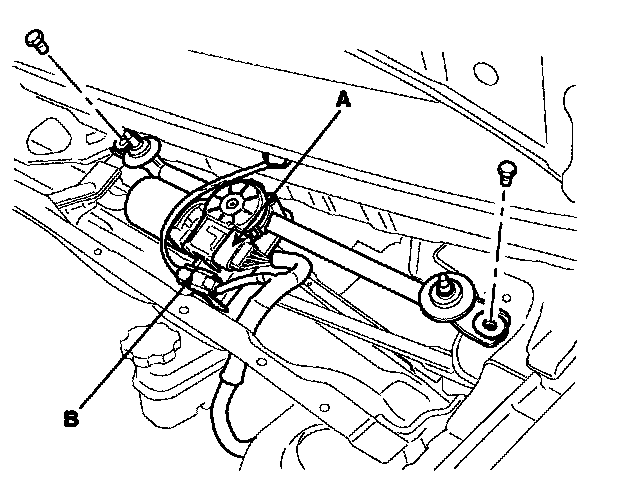 Disconnect the wiper motor connector(A) and windshield deicer connector(B) from the wiper motor & linkage assembly.
