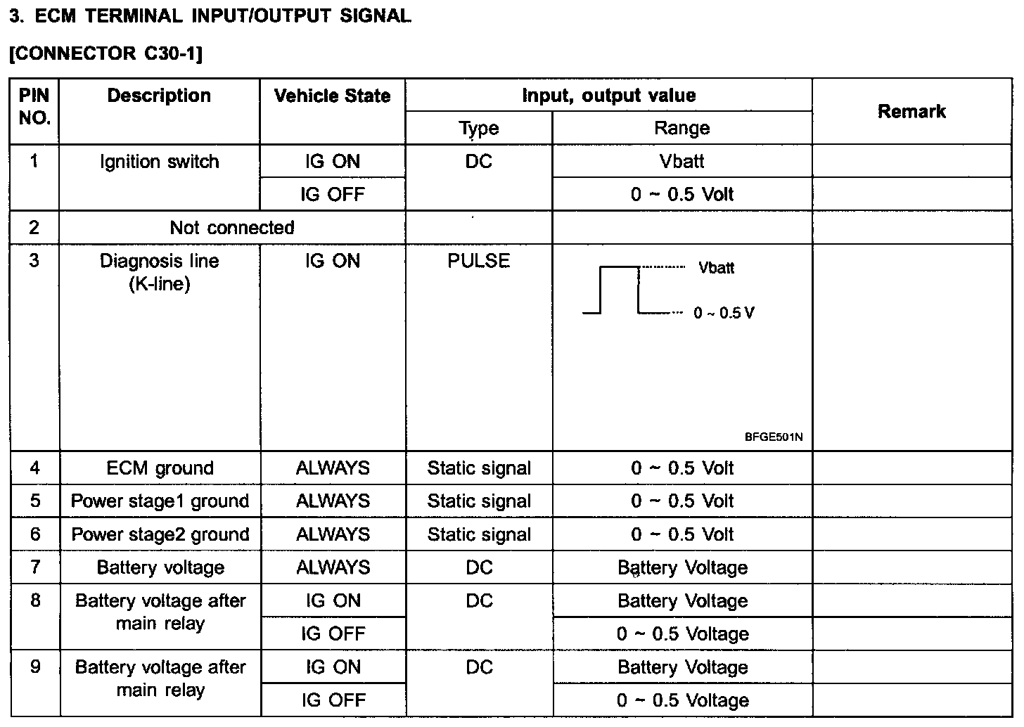 3. ECM TERMINAL INPUT/OUTPUT SIGNAL