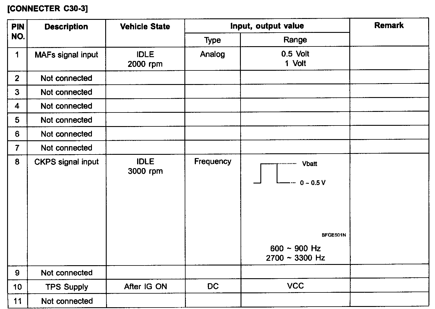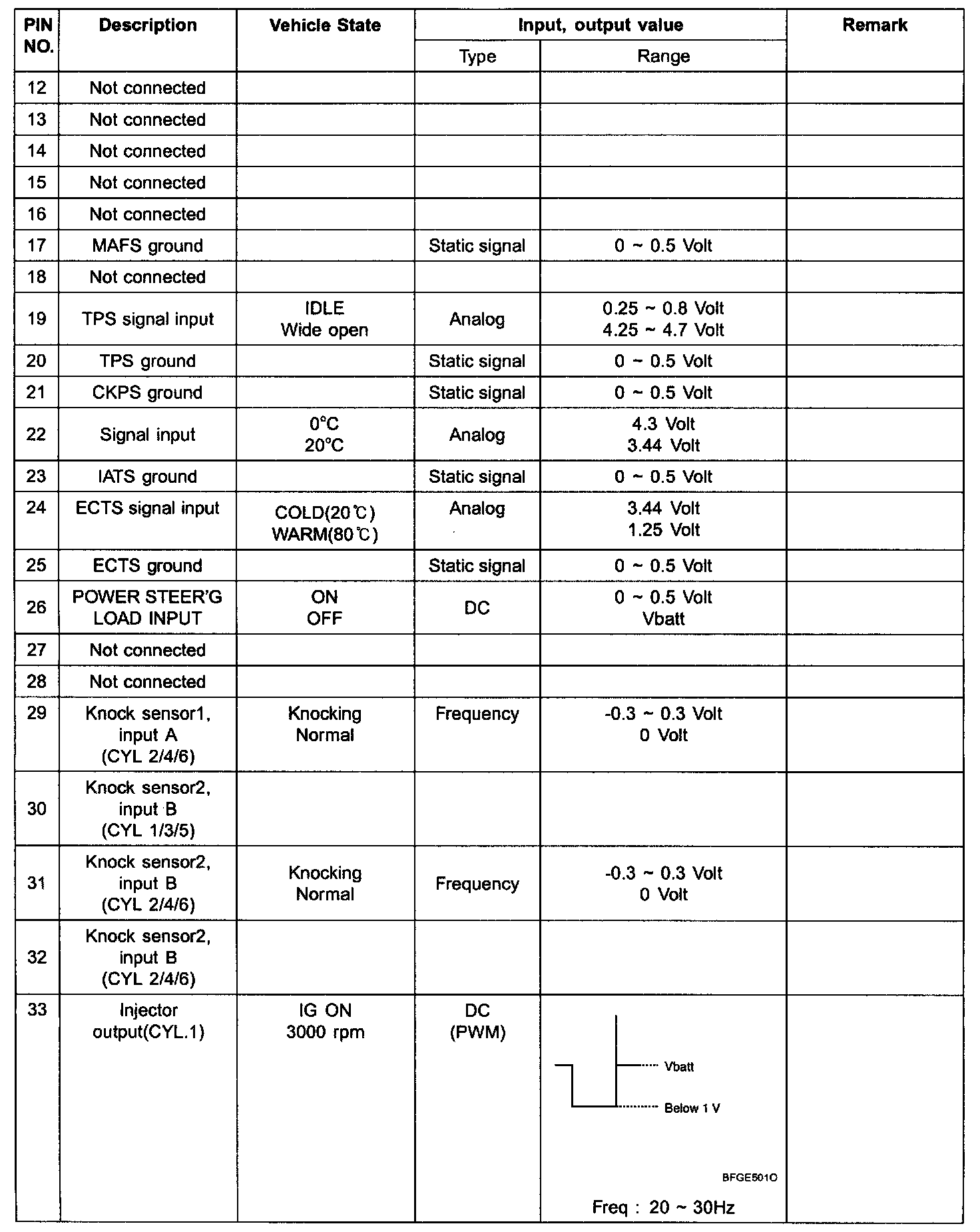 ECM Terminal Input/Output Signal [Connector C30-1]: