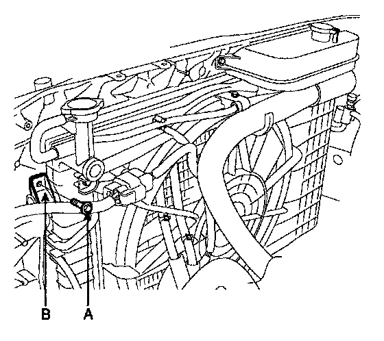 3. Remove the bolt(A), then remove the radiator bracket(B) from the radiator.
