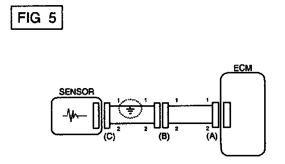 a. Disconnect connectors (A), (C) and measure for resistance between connector (A) and Chassis Ground as shown in (FIG. 6].