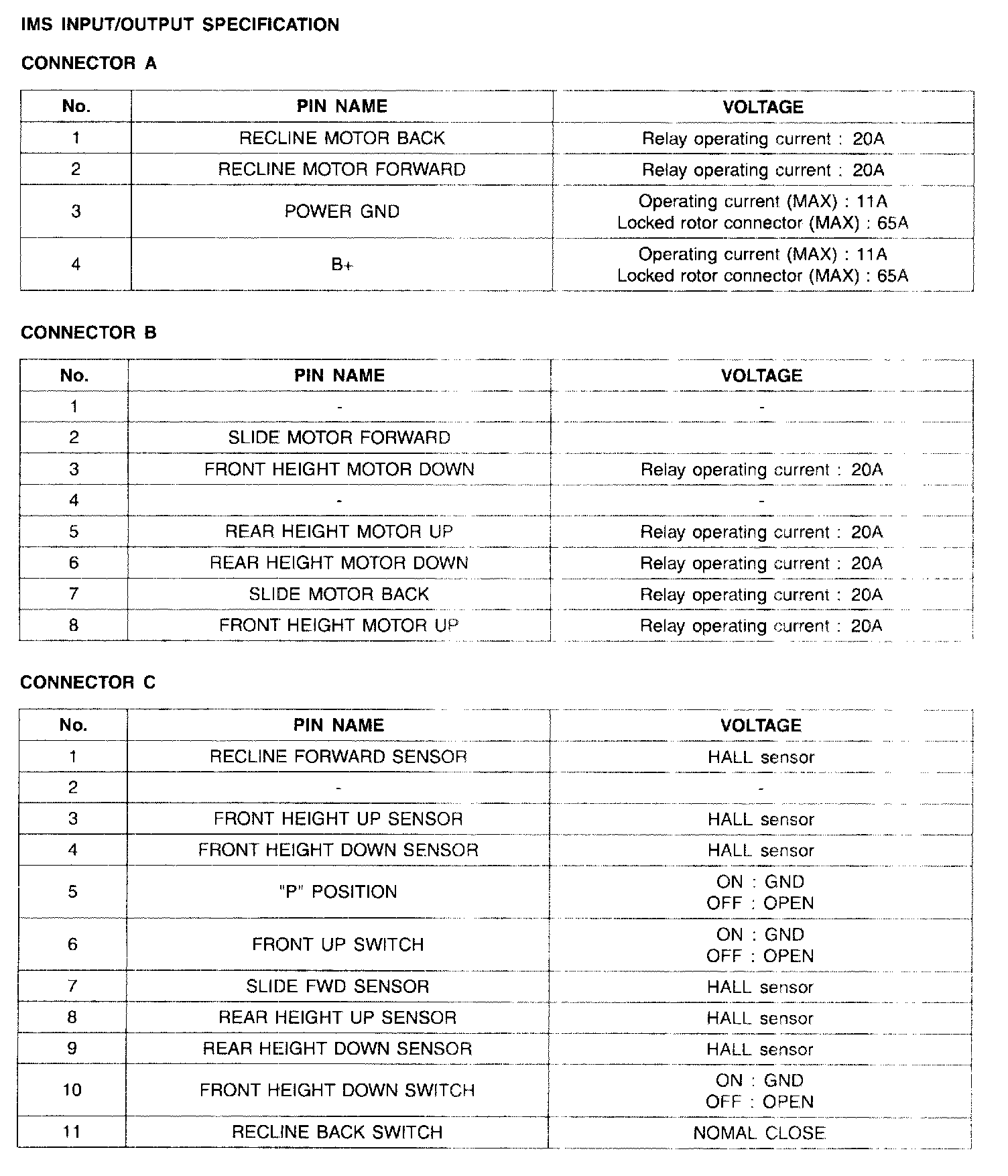 Pinout Values and Diagnostic Parameters