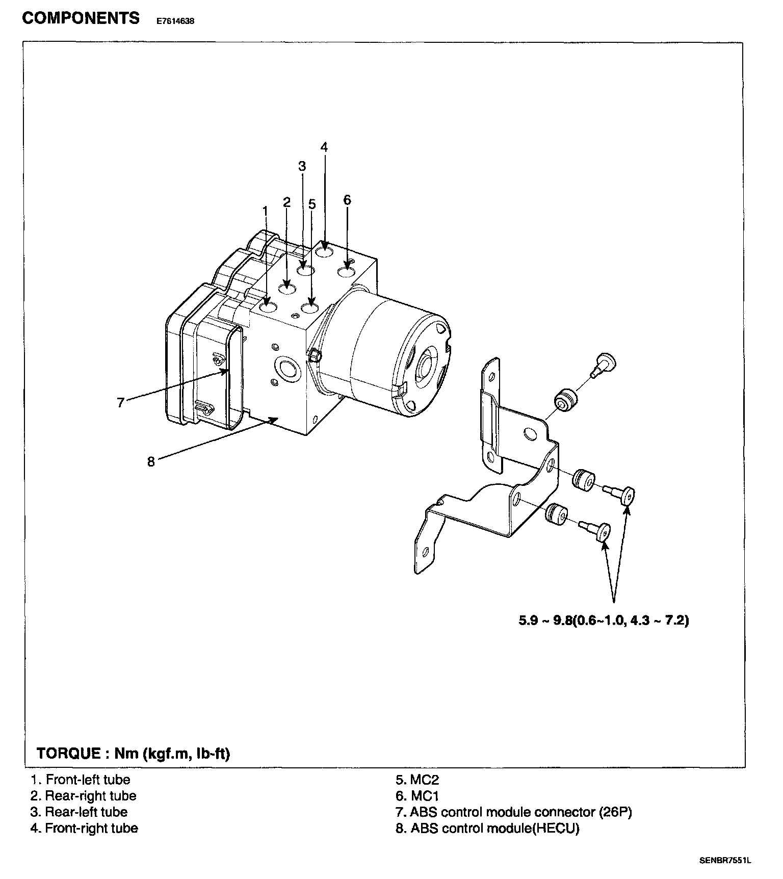 2. Tighten the HECU. mounting bolts and nuts to the specified torque.