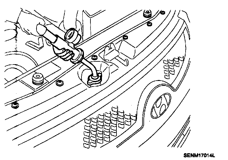 2. Apply a pressure tester to the radiator and apply a pressure of 93 - 123 kPa (0.95 - 1.25kgf/CM2, 14 - 18 psi).