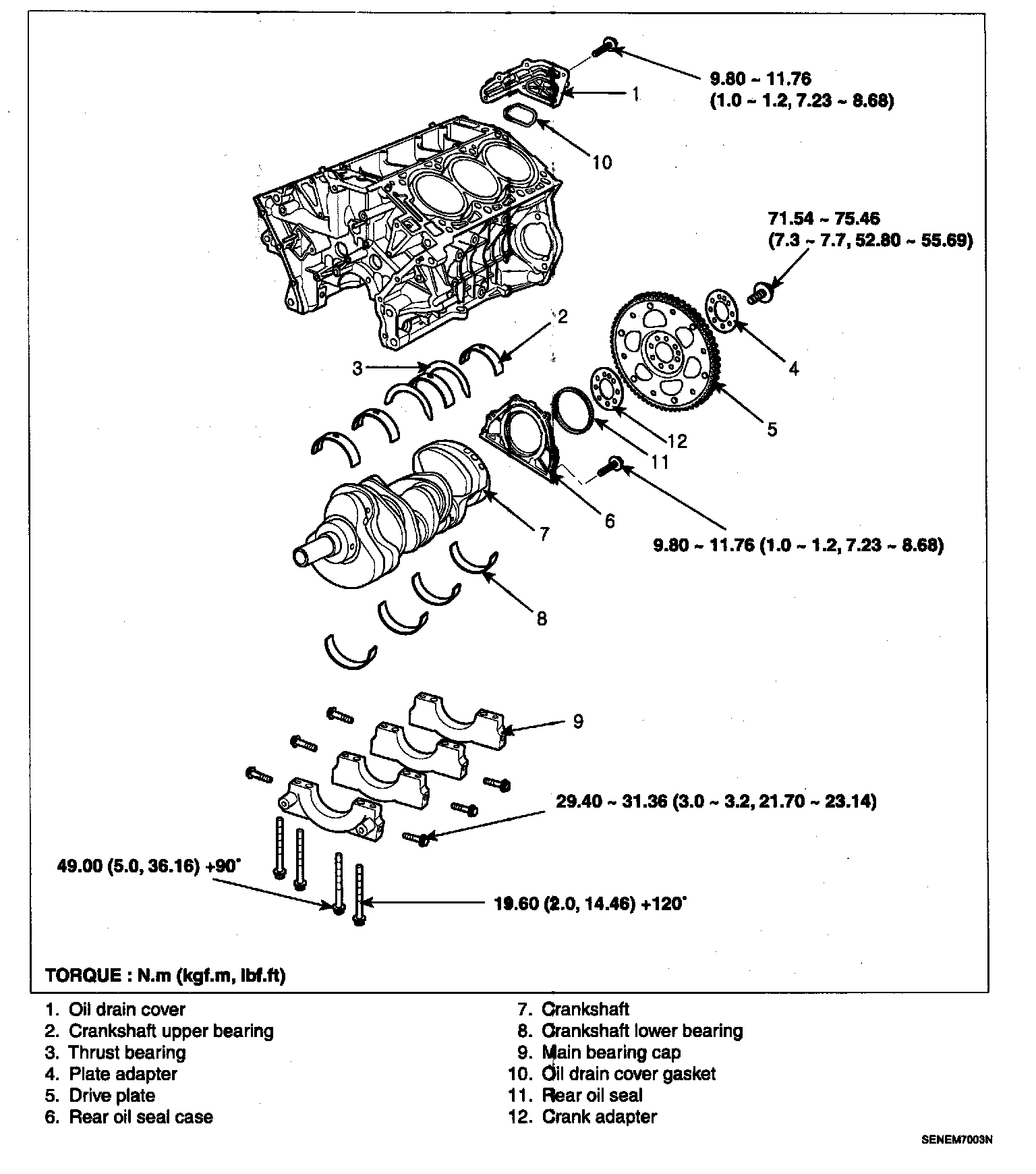 10. Remove the crankshaft main bearing cap and check oil clearance.