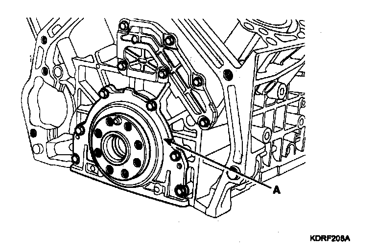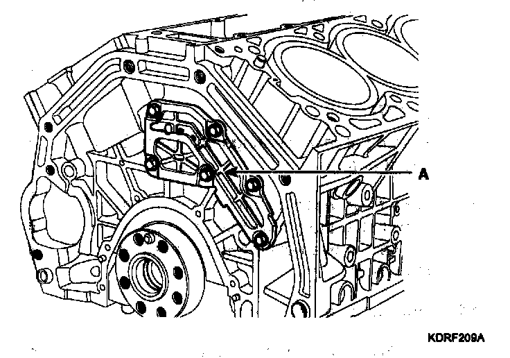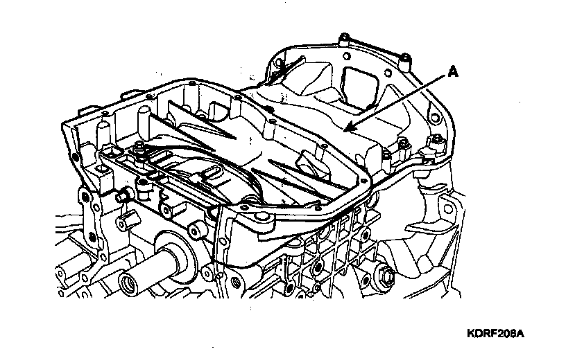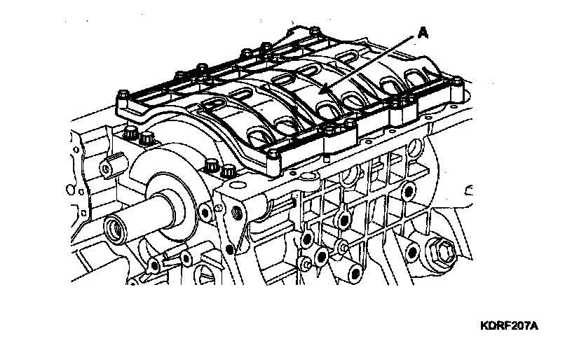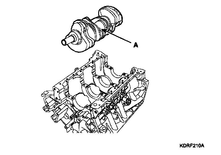 12. Lift the crankshaft (A) out of engine, being careful not to damage journals.