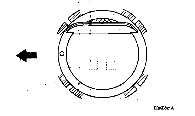 3) Position the piston rings so that the ring ends are as shown.