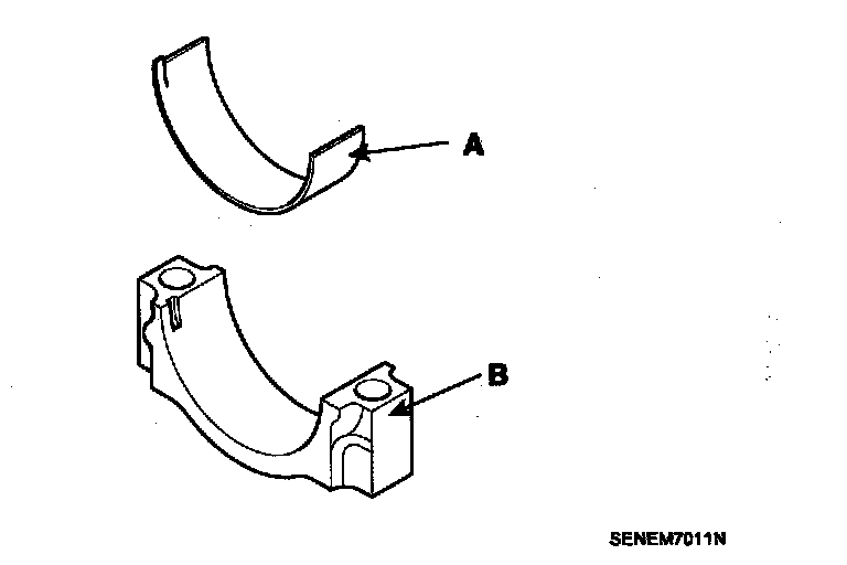 NOTE: Upper bearings have an oil groove of oil holes, Lower bearings do not.