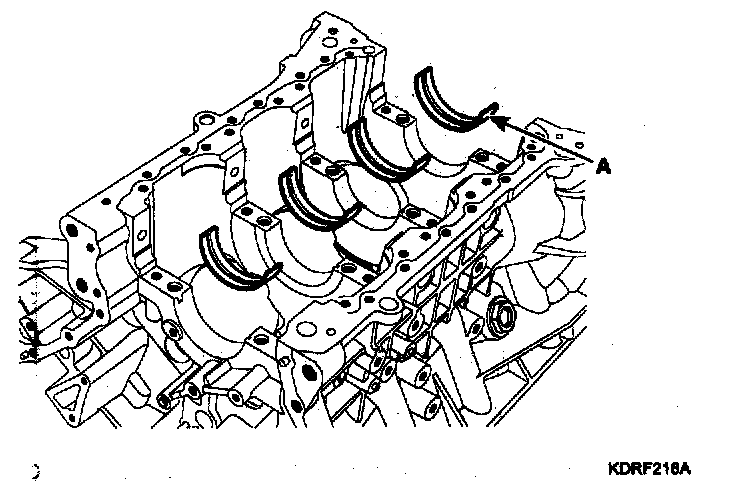 1) Align the bearing claw the claw groove of the cylinder block, push in the 4 upper bearings (A).