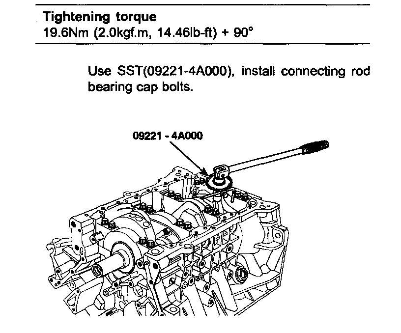 Use the SST (09221-4A000 ), install main bearing cap bolts.