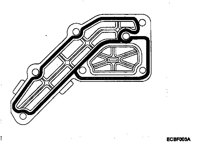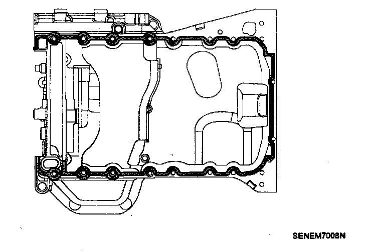 ^ When applying sealant gasket, sealant must not protrude into the inside of oil pan.