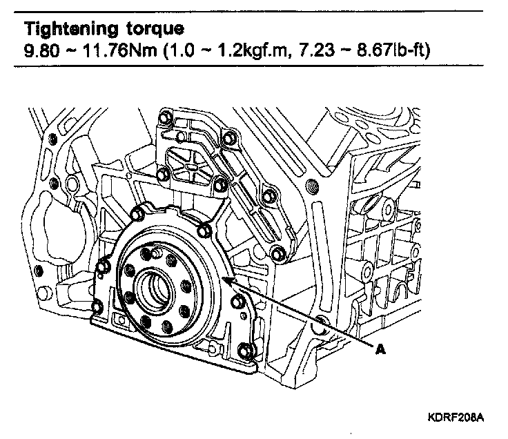 Tightening torque 71.54 - 75.46 Nm (7.3 - 7.7kgf.m, 52.80 - 55.69 lb-ft)