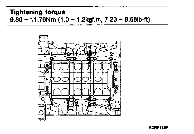 Tightening torque 15.68 - 23.52 Nm (1.6 - 2.4kgf.m, 11.57 - 17.36 lb-ft)