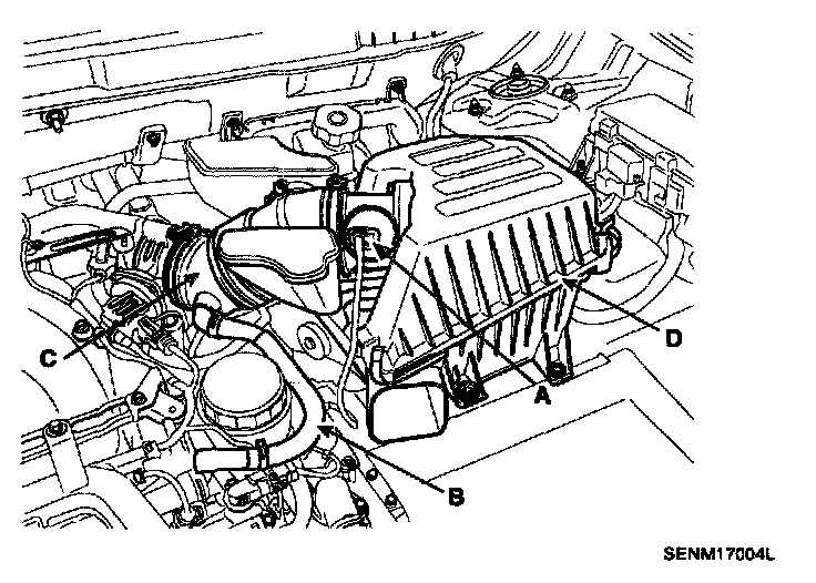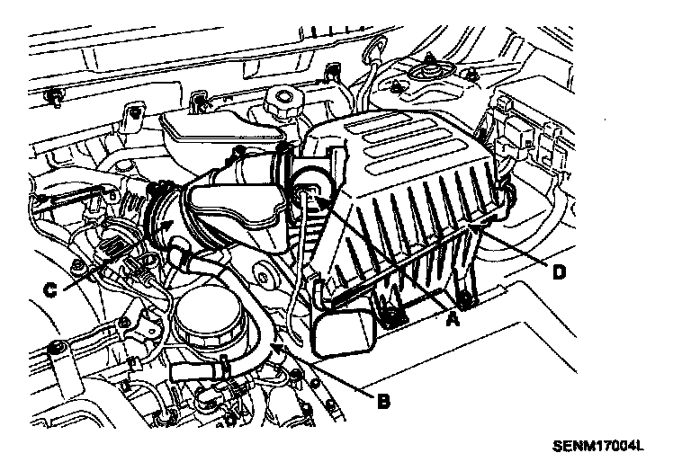 2. Remove the air cleaner body (D) and the intake hose (C).